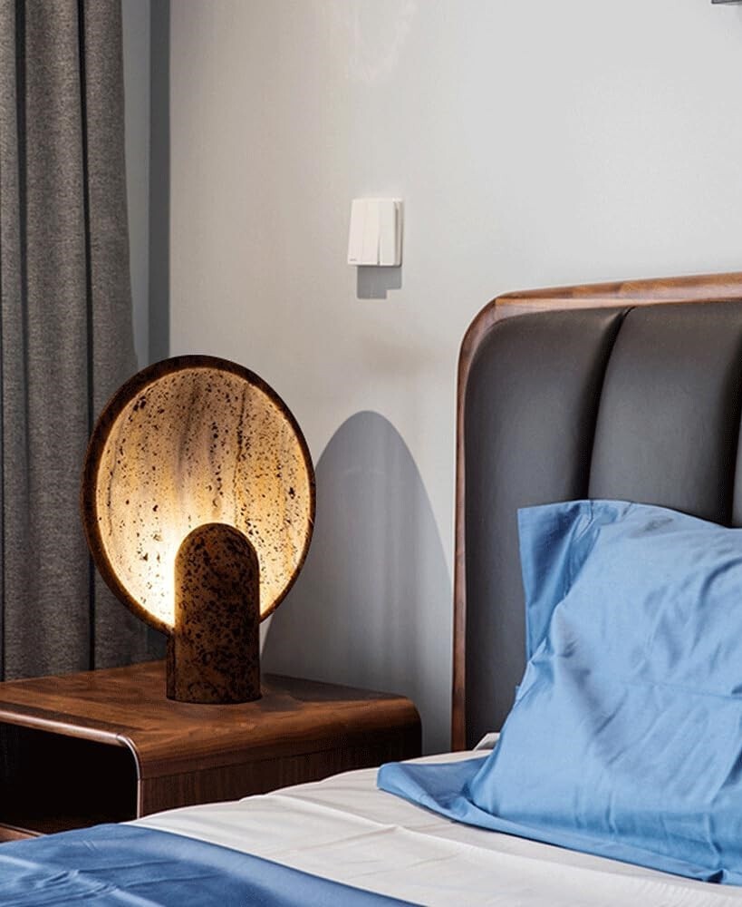 مصباح الترافرتين،،، مصنوع من حجر الترافرتين الإسباني لتزيين غرفة المعيشة و غرفة النوم مزود بإضاءة LED الموفرة للطاقة